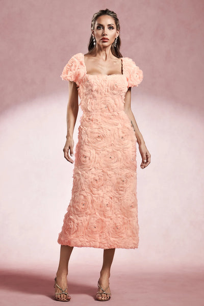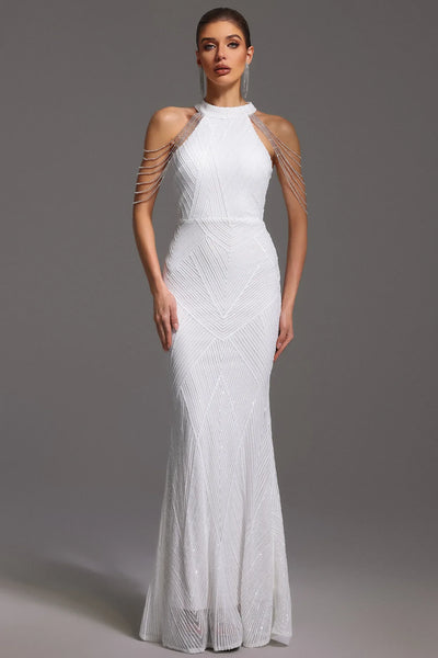 Dorie Deep V-Neck Bandage Shoulder Open Pearl Long Dress