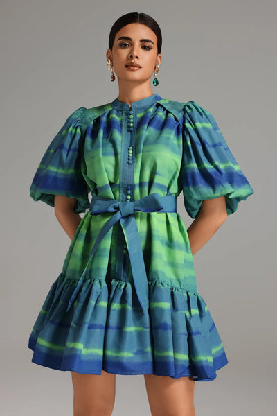 Gerasa – Floral Patterned Ruffled Long Sleeve V-Neck Mini Dress