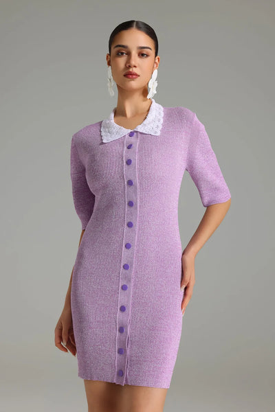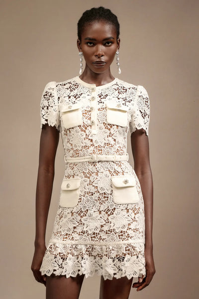 Round Neck Short Sleeve Diamond Lace Mini Dress