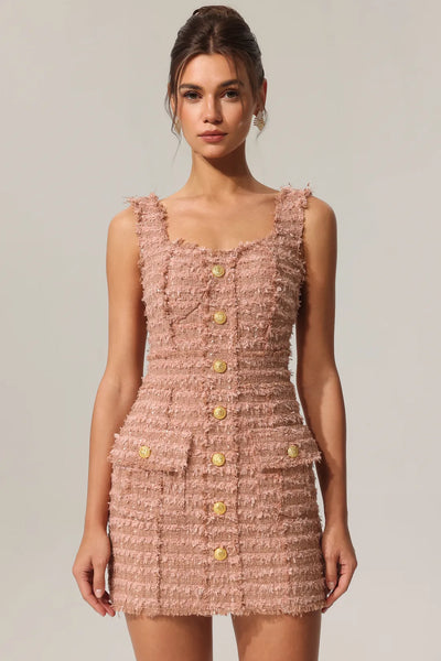 Pinky Deep V Diamond Fringed Bandage Mini Dress