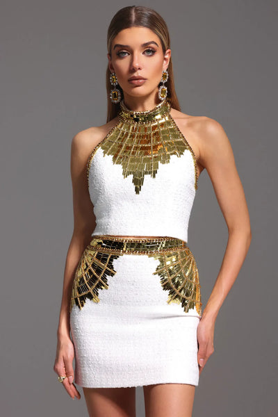 Havani Choker Necklaceless Sequined Mini Two-Piece Set