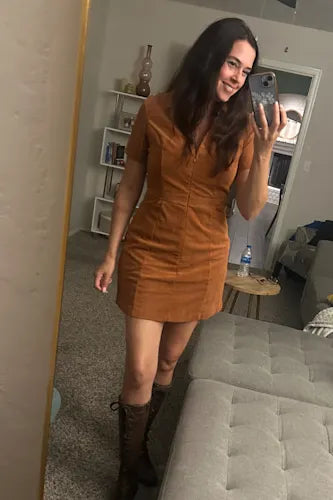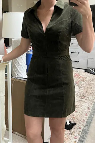 A: The dress is designed to be form-fitting while still being comfortable. It runs true to size, but if you are between sizes or prefer a slightly looser fit, we recommend sizing up. Please refer to our size chart for the most accurate measurements