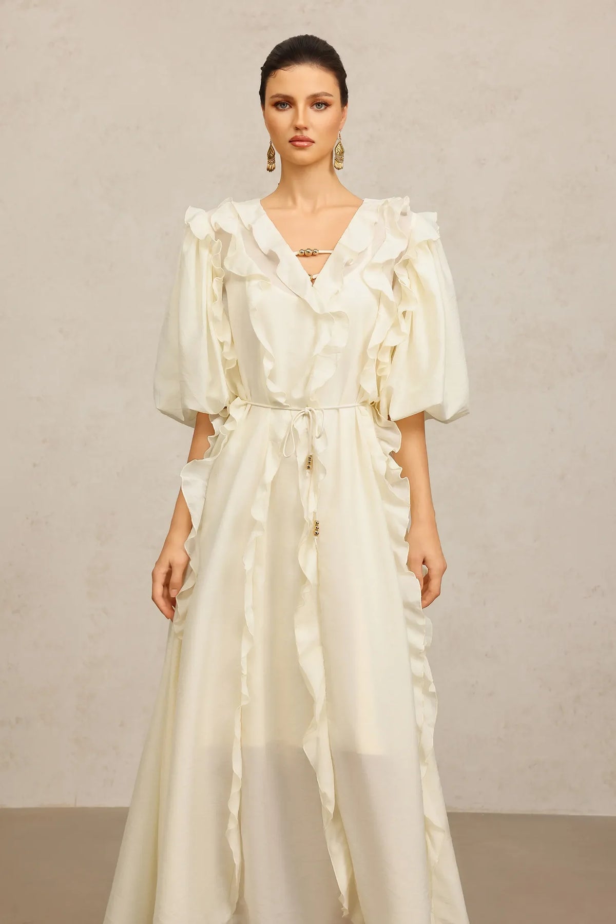 A: The dress's elegant design makes it versatile for a variety of occasions. It's a great choice for a wedding guest, a bridal or baby shower, a semi-formal dinner, or a romantic date night.
